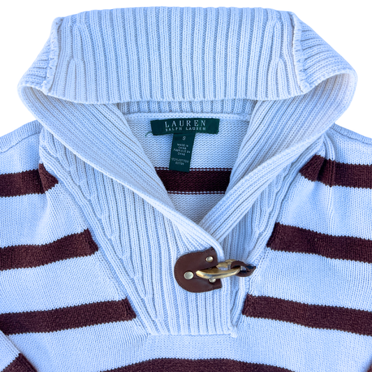Pull Ralph Lauren blanc rayé marron col chale pour femmes - Taille S