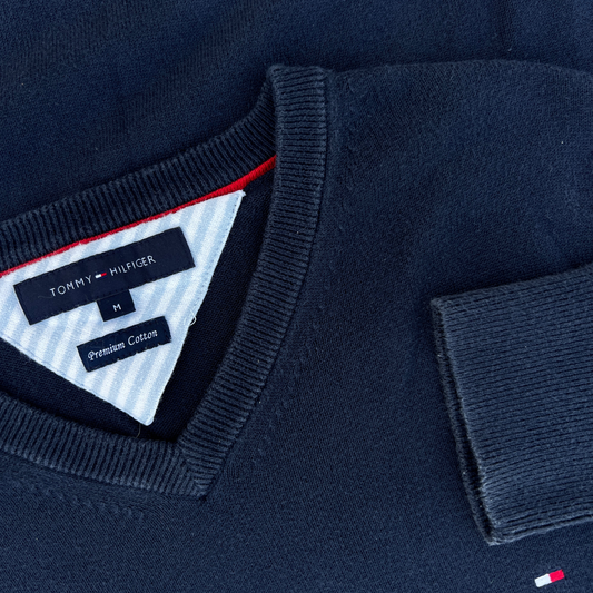 Pull Tommy Hilfiger col V bleu foncé pour hommes - taille M