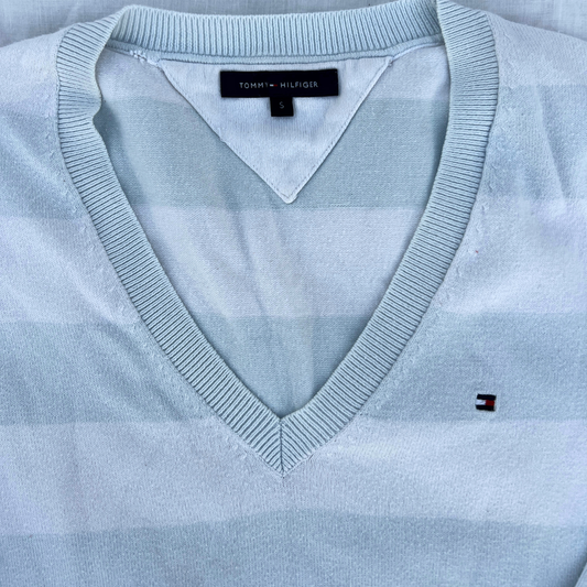 Pull Tommy Hilfiger col V blanc rayé pour femmes – Taille S