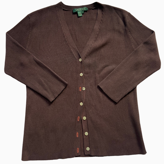 Rare & Vintage - Pull boutonnée Ralph Lauren marron Made in Hong-Kong pour femmes - taille S