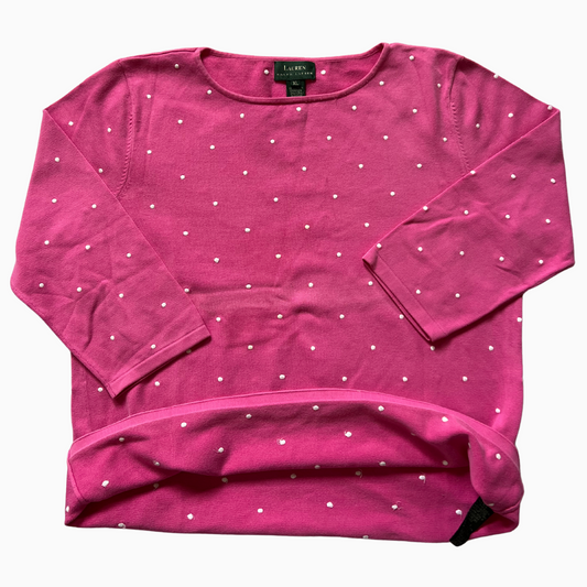 Pull Ralph Lauren col rond manches 3/4 rose pour femmes - taille XL (fits L)