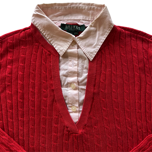 Pull Rouge Ralph Lauren col chemise intégrée pour femmes - taille S
