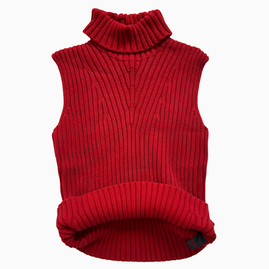 Rare & Vintage - Pull Ralph Lauren sans manches col roulé rouge pour femmes - taille S/XS