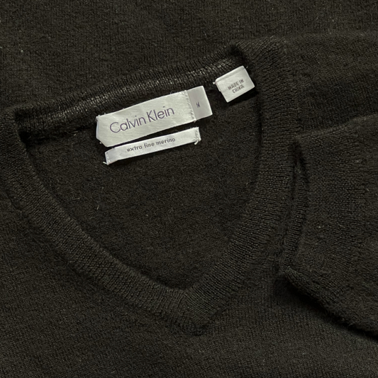 Pull en laine Calvin Klein col V en laine noir pour hommes - taille M
