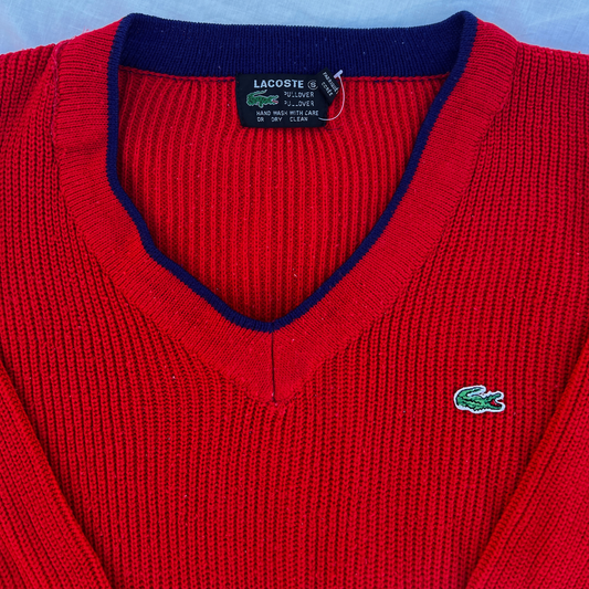 Rare & Vintage - Pullover col V Lacoste rouge pour hommes – Taille S