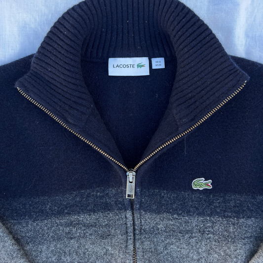 Pull Lacoste full zip bleu foncé et gris pour hommes – Taille XS