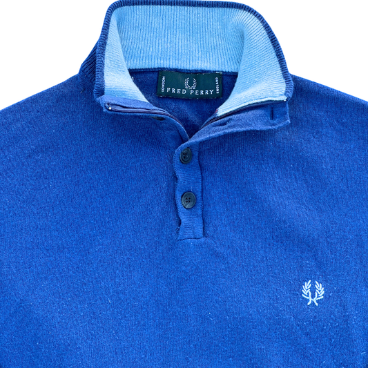 Pull 1/4 zip Fred Perry bleu en laine pour hommes – Taille S