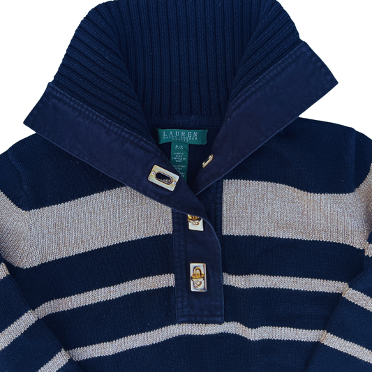 Pull Ralph Lauren boutonné noir rayures gold pour femmes - taille S