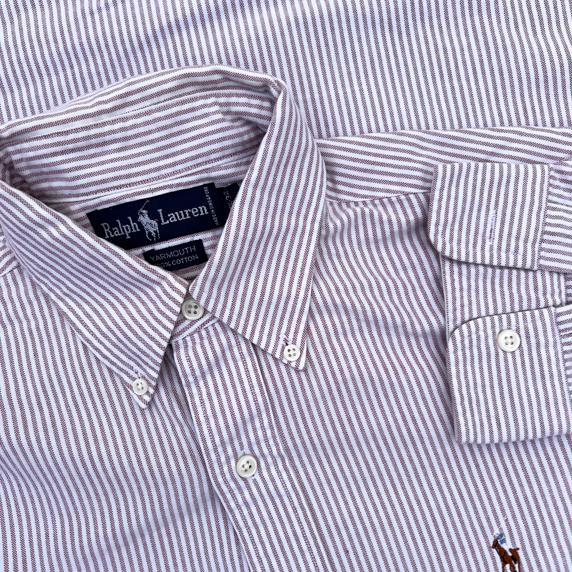 Chemise Ralph Lauren blanche rayée grenat - taille L