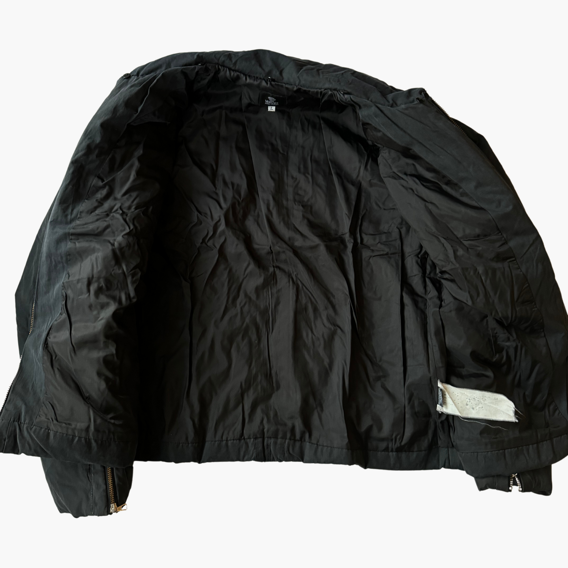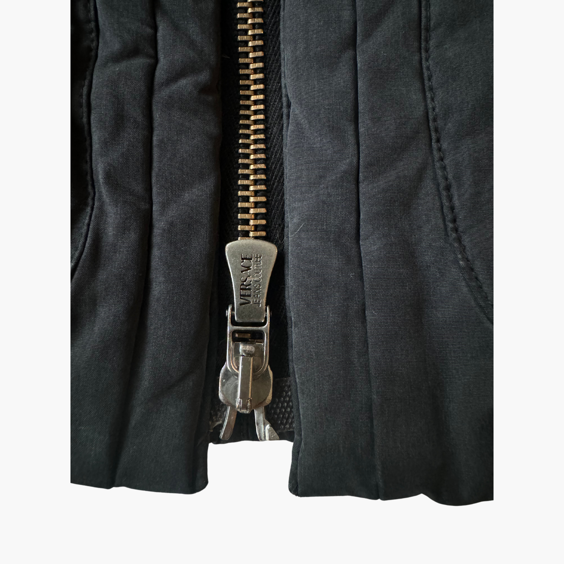 Découvrez cette jaquette Versace Jeans Couture, un modèle unique au style bomber biker qui allie élégance et audace. Confectionnée en Italie avec un rembourrage en poil long de lapin, cette pièce légèrement délavée incarne le luxe et le savoir-faire artisanal. Sa qualité distinguée et ses finitions impeccables en font un incontournable de votre garde-robe, ajoutant une touche intemporelle à n'importe quelle tenue.